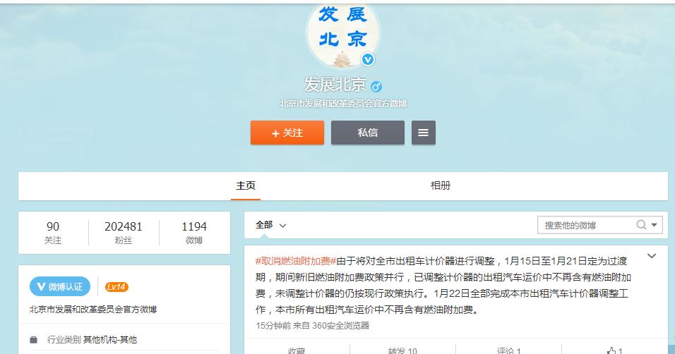 央廣網(wǎng)北京1月14日消息,據(jù)北京市發(fā)展和改革委員會(huì)官方微博消息,由于將對(duì)北京全市出租車(chē)計(jì)價(jià)器進(jìn)行調(diào)整,1月15日至1月21日定為過(guò)渡期,期間新舊燃油附加費(fèi)政策并行,已調(diào)整計(jì)價(jià)器的出租汽車(chē)運(yùn)價(jià)中不再含有燃油附加費(fèi),未調(diào)整計(jì)價(jià)器的仍按現(xiàn)行政策執(zhí)行。1月22日全部完成北京市出租汽車(chē)計(jì)價(jià)器調(diào)整工作,北京所有出租汽車(chē)運(yùn)價(jià)中不再含有燃油附加費(fèi)。