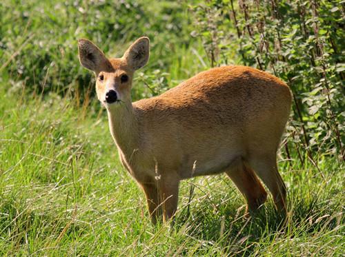 獐屬鹿科,也稱水鹿,高約半米、長約1米,無角,毛色棕黃,性情溫順,食草或嫩葉。它們喜愛灘涂、淺灘,從新石器時(shí)代就廣泛分布于上海市郊,松江的廣富林遺址中也有獐骸骨。但隨著城市化進(jìn)程的加快,獐逐漸失去了家園。上世紀(jì)初,獐在上海絕跡。