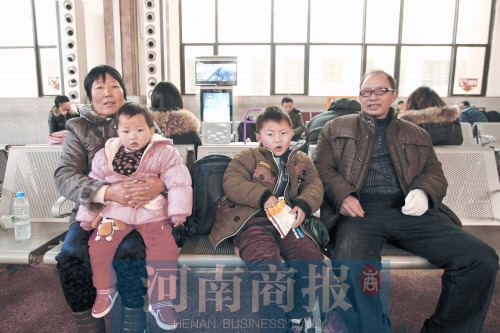 “石頭、剪刀、布,我出布……”2月3日上午11點(diǎn),鄭州火車站第四候車廳里,頭發(fā)花白的孫全勝老人正陪著外孫小叮當(dāng)拍手做游戲。