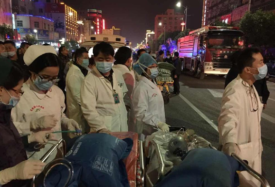 醫(yī)護(hù)人員現(xiàn)場等待救治傷員
