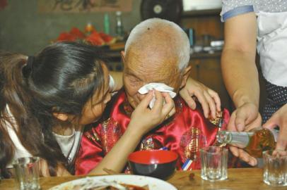 鄭天付放下端著的酒杯,眼淚不自覺地從眼角滑了出來,順著布滿皺紋的臉頰,滴在紅色唐裝上。發(fā)現(xiàn)妹妹看到他哭,鄭天付抹去眼角的淚痕,默默看著桌子,沒有說話。