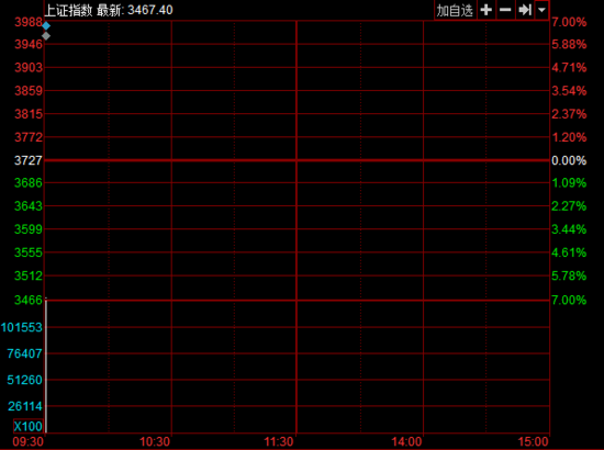 開(kāi)盤(pán):兩市大幅低開(kāi) 滬指下跌6.97%擊穿3500點(diǎn)
