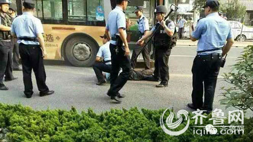 7月2日下午17:00左右,濟南市公交總公司六分公司一隊K52路女駕駛員董丹駕駛公交車沿解放路由東向西行駛至濟南中心醫(yī)院公交站點時,上來一位30歲左右的男子,該男子上車后,迅速從褲兜里掏出一把匕首,抵在女駕駛員腰間,要求駕駛員將公交車直接開到泉城廣場,并兇煞地大聲向車上的乘客喊道:“你們坐在座位上都不要動”。情況十分危急,駕駛員董丹第一時間按下車廂內(nèi)的一鍵報警銨鍵迅速報警,一邊與該男子慢慢周旋,一邊想辦法疏散乘客,確保乘客安全。在反復勸說下,該男子答應讓乘客在解放橋南公交站點前方路口下車, 董丹抓住有利時機,第一時間將乘客安全疏散。這時,只有一名男乘客堅持留在車上,協(xié)助駕駛員董丹一起與該男子進行周旋。在車輛行駛到銀座商城附近時,濟南特警接警后迅速趕來,董丹看到前方警車后,立即起身,拿起車廂內(nèi)的滅火器擊打該男子,同時,快速拔下滅火器保險銷,沖著該男子面部噴射,民警迅速將歹徒抓獲。
