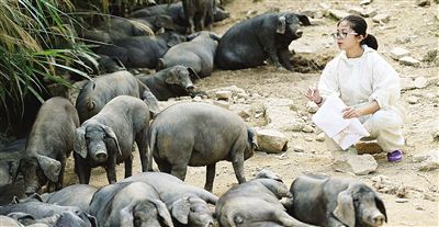 江西省修水縣港口鎮(zhèn)港口村養(yǎng)殖戶鄒玲麗清點(diǎn)在圈外覓食休息的花豬數(shù)量。當(dāng)前豬肉價(jià)格變化主要受到存欄量低等供給因素的影響,需求基本面并未發(fā)生變化。新華社記者 萬(wàn) 象攝