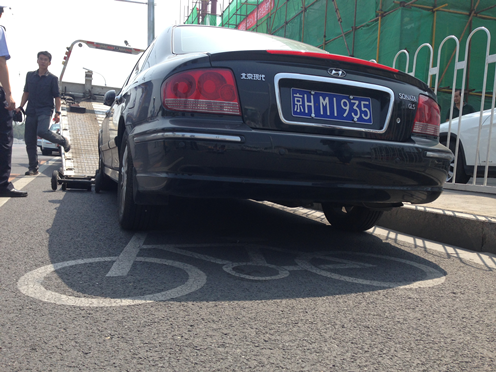 由于當(dāng)時(shí)車(chē)主不在現(xiàn)場(chǎng),執(zhí)法人員只能將車(chē)輛拖離現(xiàn)場(chǎng),在拖車(chē)的過(guò)程中,車(chē)主出現(xiàn)。但是由于涉嫌在非機(jī)動(dòng)車(chē)道上違法停車(chē),車(chē)主被處以100元罰款,并記3分。