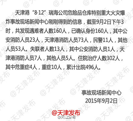 天津港爆炸事故已發(fā)現(xiàn)遇難者160人 13人失聯(lián)