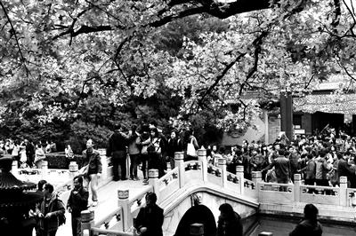 3點(diǎn)30分左右,公交車抵達(dá)植物園南門時(shí),車輛前進(jìn)的速度變得更慢,車窗外有不少人在維護(hù)交通。