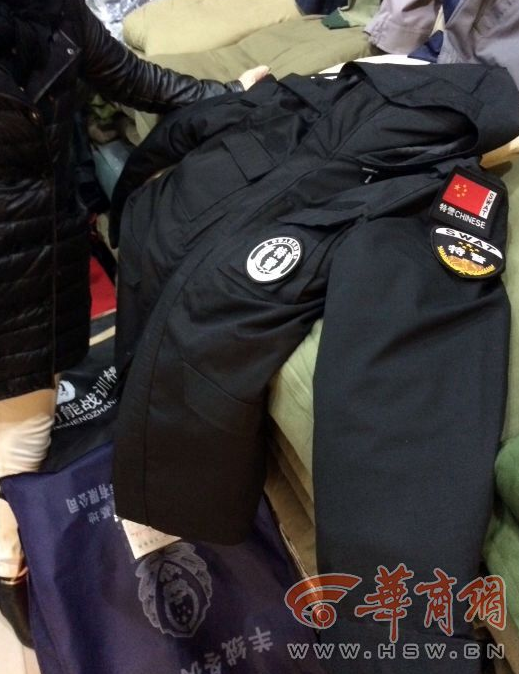“兄弟,我勸你還是別用‘特警’的標志,你穿了人家會找你尋事呢!”在名為“神威三五一四廠總經銷”的商店里,店家熱情推薦著特警服,“特警服連標志240元一套,‘特警’、‘特勤’、‘保安’的標志我們都有,樣式和特警的一模一樣,只是換了字,還是用‘特勤’保險,不仔細看看不出來!”昨日在“軍威被服經銷部”、“坤明勞保用品經銷部”、“軍燦勞保”、“薄利被服銷售店”、“金盾被服勞保鞋帽經銷部”等另外5家均表示,特警服的價格在260元到430元之間,無需出具任何手續(xù)就可以購買。