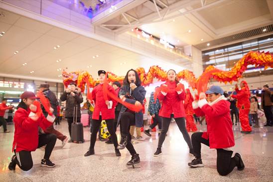 近日,在上海虹橋火車站,一批志愿者上演了以“盡舉手之勞,關愛春運身邊人”為主題的公益快閃活動,倡導大家用自己的點滴行動,在春運路上互幫互助,溫暖彼此的回家路。