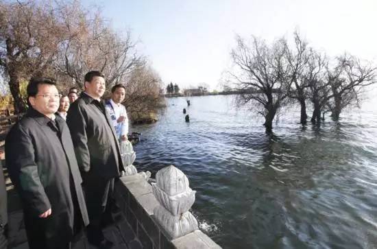 圖為:2015年1月20日,習(xí)近平來到大理白族自治州大理市灣橋鎮(zhèn)古生村,仔細(xì)察看洱海邊的生態(tài)保護(hù)濕地。