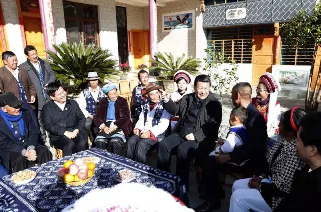 圖為:2015年1月20日,習(xí)近平來到大理白族自治州大理市灣橋鎮(zhèn)古生村村民李德昌家,同村民們圍坐在一起親切拉家常。