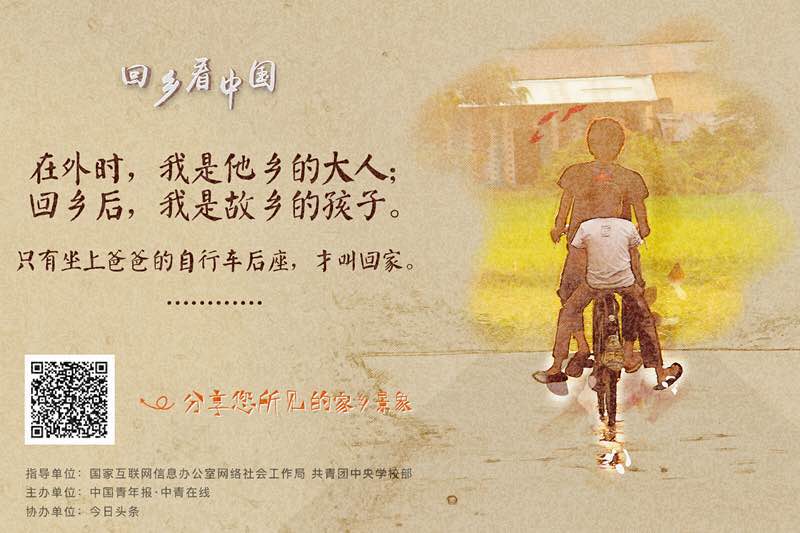 中青在線北京2月4日電(中國青年報·中青在線記者 唐軼)春節(jié)回鄉(xiāng),您是否“望得見山、看得見水、記得住鄉(xiāng)愁”?在猴年新春到來之際,在一年一度人口大遷徙之際,中國青年報·中青在線、冰點(diǎn)暖聞客戶端攜手今日頭條及多家地方主流媒體微信公眾號共同發(fā)起“中國好網(wǎng)民·回鄉(xiāng)看中國”2016網(wǎng)上尋找百名青年觀察員行動。