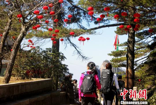 春節(jié)期間,黃山山道兩邊樹上掛滿紅燈籠。 余昌奎 攝