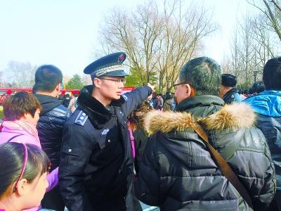 上午10時,地壇廟會迎來客流高峰,東門附近的部分機動車道進行了臨時封閉,游人被有序疏導(dǎo)著從事先設(shè)計好的行走路線進園和出園。