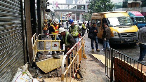 水務(wù)署人員關(guān)上水掣后搶修。(圖:香港《星島日報》網(wǎng)站/楊偉亨 攝)。