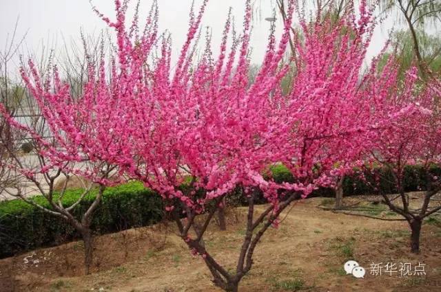 7.碧桃:樹(shù)冠寬廣而平展,花型豐腴,色彩鮮艷,在園林綠化中被廣泛用于湖濱、水畔、道路兩側(cè)和公園內(nèi)?倳(shū)記在北京參加義務(wù)植樹(shù)時(shí)種植。