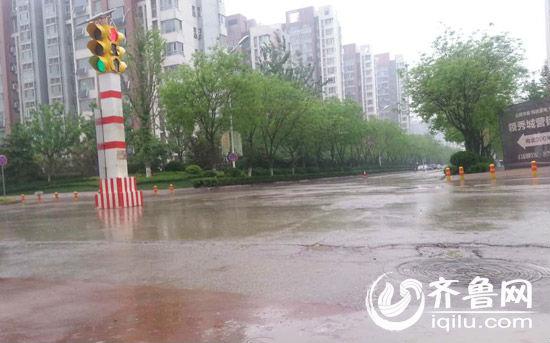濟南魯能領秀城小區(qū)內(nèi)道路已見積水(記者黃鵬偉攝)