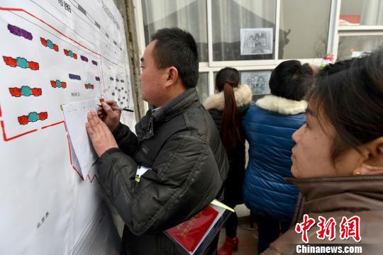 圖為被征遷土地居民正在選擇回遷安置樓房號(hào)。 馮濤 攝