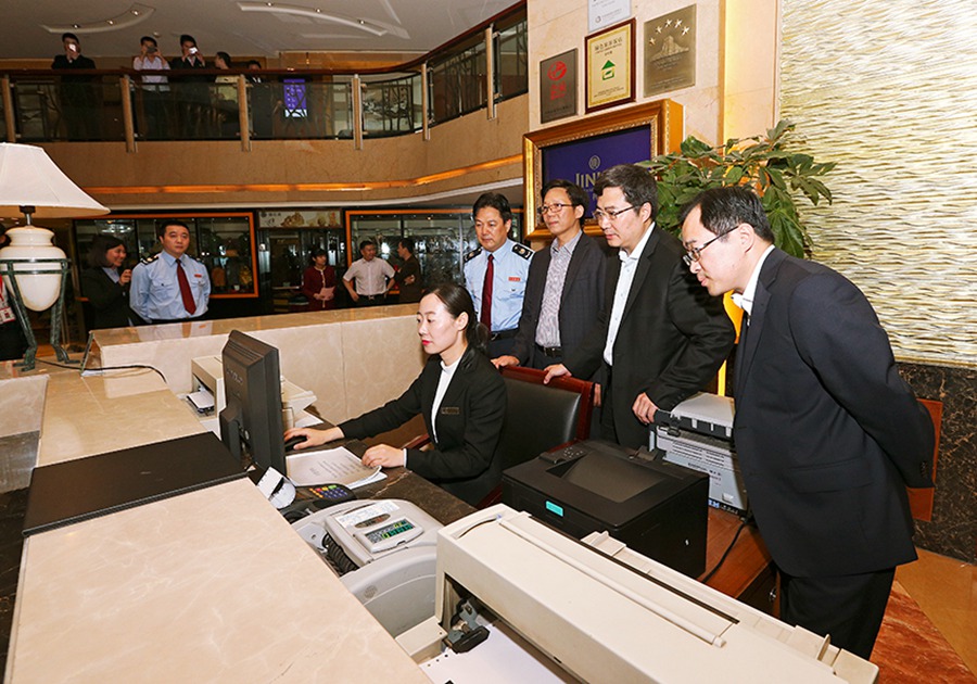 【全國(guó)首張】4月30日24時(shí)許,陳生(左)在北京民族飯店填寫(xiě)增值稅發(fā)票客戶(hù)信息表。5月1日,營(yíng)業(yè)稅改征增值稅改革在全國(guó)推開(kāi)。當(dāng)天零點(diǎn)一過(guò),正在北京民族飯店結(jié)賬的溫州商人陳生接過(guò)了飯店開(kāi)出的第一張?jiān)鲋刀悓?zhuān)用發(fā)票,令他驚喜的是這張發(fā)票也是營(yíng)改增試點(diǎn)全面推開(kāi)后全國(guó)首張?jiān)鲋刀惏l(fā)票。