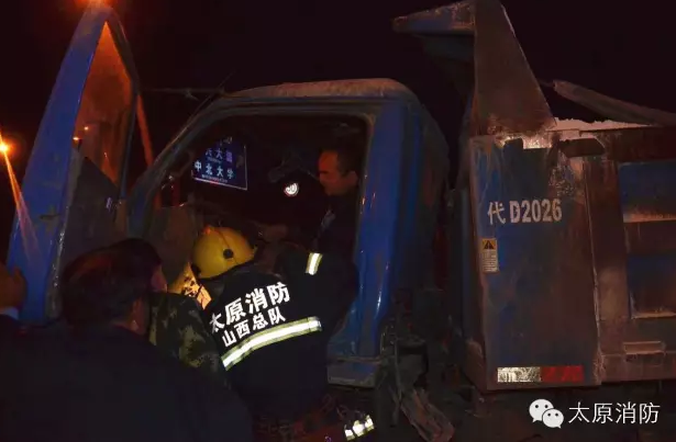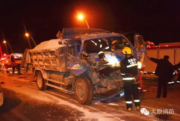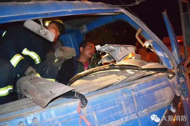 車禍的起因為一輛車逆行。事故發(fā)生后,其中一輛貨車的司機(jī)被困。 太原市公安消防支隊柴村中隊官兵迅速到達(dá)現(xiàn)場,當(dāng)時貨車司機(jī)被困駕駛室內(nèi),意識已經(jīng)開始模糊,如果不及時搶救,很可能有生命危險。指揮員立即命令警戒組兩名官兵對周圍進(jìn)行現(xiàn)場警戒,救援組官兵利用液壓破拆工具及鐵鋌等對駕駛室車門、座位等部位進(jìn)行破拆。