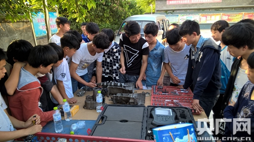 豐都縣紅星中學(xué)的學(xué)生正在展示變速器拆裝