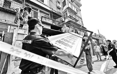 大井南里4號樓一樓臨街原本是圍欄,從去年開始,陸續(xù)有商戶將圍欄拆卸,私自搭建棚戶,逐漸成了違建底商一條街。開設的門店有經(jīng)營麻辣燙、包子的小餐廳,也有洗衣店、打印店等,給樓上及附近居民帶來了極大的噪音污染和環(huán)境污染。5月27日上午,豐臺區(qū)食藥監(jiān)局聯(lián)合盧溝橋街道辦事處、工商、城管、公安等部門,對這條街上的違建和無證無照商戶進行了統(tǒng)一查處。摘除25家違建無照無證商戶招牌,責令其清理營業(yè)場所。