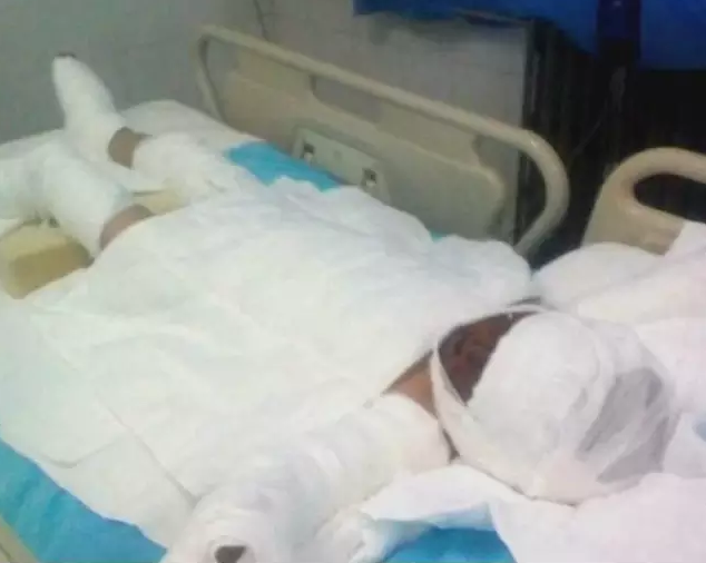 前天是六一兒童節(jié),延津縣馬莊鄉(xiāng)王泗坡村的小鵬卻在醫(yī)院度過了他的第11個兒童節(jié)。5月24日旁晚7點多,11歲的小鵬獨自一人在家,他爸爸在外地打工,媽媽在地里干農(nóng)活還沒有回來。就是這時候,意外發(fā)生了。在他打開廚房電燈開關(guān)的一瞬間,突然發(fā)生了爆燃,事故導(dǎo)致小鵬頭部和身上被嚴重燒傷。