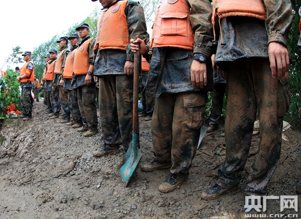 另外,南京周邊的安徽當(dāng)涂縣水位也已超過警戒線,部分河堤被洪水漫過,村莊和農(nóng)田被淹,第一集團(tuán)軍某機(jī)步旅緊急出動300余名官兵,攜帶鍬鎬,正趕往災(zāi)區(qū)展開救援。(照片由趙家佳佳提供)