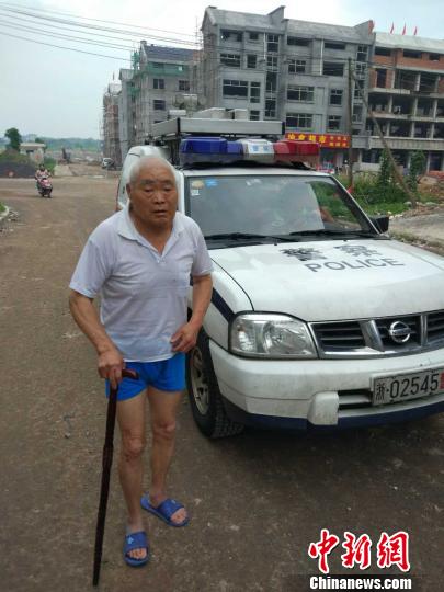 當(dāng)班執(zhí)勤民警任警官接到指令后立即駕車前往,沿方巖收費(fèi)站一路向永康方向搜尋,在離方巖收費(fèi)站5公里的地方,發(fā)現(xiàn)有一位老人,一頭稀疏白發(fā),上身著一件白色T恤,下身穿一條藍(lán)色的短褲,腳上搭一雙藍(lán)色的拖鞋,右手拄著拐杖,慢慢悠悠地在快速車道內(nèi)沿著路緣石行走。