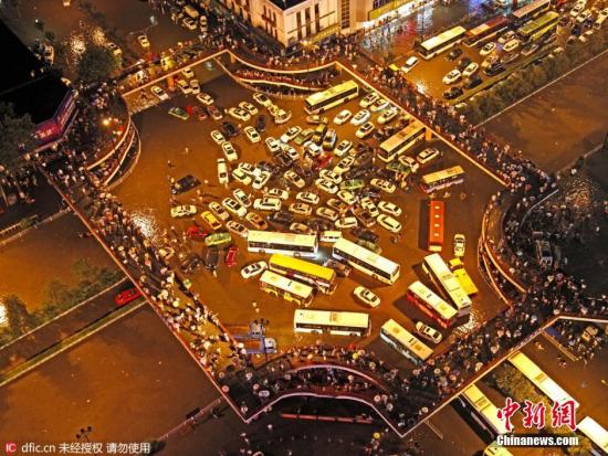 資料圖 7月24日晚,一場(chǎng)暴雨突降西安,導(dǎo)致城區(qū)多處積水嚴(yán)重,小寨十字因積水道路堵塞,大量市民被迫徒步回家。