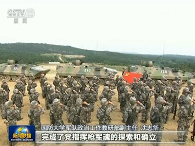 國(guó)防大學(xué)軍隊(duì)政治工作教研部副主任沈志華:從建黨之初到建軍之始,我們黨在長(zhǎng)達(dá)6年的血雨腥風(fēng)中,摸索出“槍桿子里面出政權(quán)”的真理,完成了“黨指揮槍”軍魂的探索與確立!罢怯辛诉@個(gè)魂,才有了后來(lái)民族解放、國(guó)家獨(dú)立!薄白ゲ蛔∵@個(gè)歷史的‘根’,就立不起今天改革強(qiáng)軍的‘魂’!