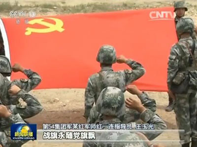 第54集團(tuán)軍某紅軍師紅一連指導(dǎo)員王玉光:如今面對(duì)改革強(qiáng)軍的時(shí)代大考,我們更是要敢挑重?fù)?dān)、奮勇前行,用黨支部的戰(zhàn)斗堡壘作用凝魂聚氣,用敢打必勝的血性勇氣練兵備戰(zhàn),確保軍魂融入靈魂里,戰(zhàn)旗永隨黨旗飄。