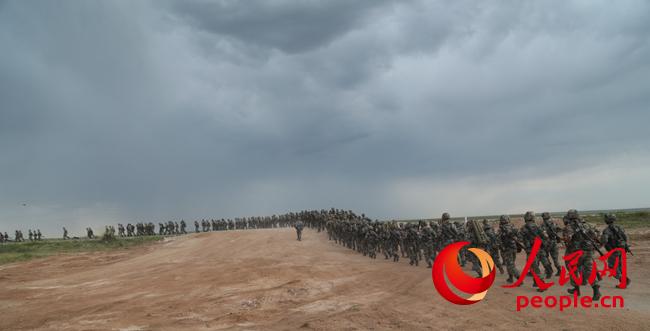 盛夏的朱日和,草木蔥郁,山雞野兔四處出沒!白砝锾魺艨磩,夢(mèng)回吹角連營(yíng)。八百里分麾下炙,五十弦翻塞外聲,沙場(chǎng)秋點(diǎn)兵!币粓(chǎng)突如其來(lái)的暴雨籠罩著千里戰(zhàn)場(chǎng),裝甲車、坦克、火炮奔涌而來(lái),朱日和立刻成為人們關(guān)注的焦點(diǎn)!翱缭-2016·朱日和”實(shí)兵對(duì)抗演習(xí)拉開了序幕。戰(zhàn)車轟鳴,戰(zhàn)機(jī)突襲,電磁對(duì)抗,構(gòu)成了中國(guó)陸軍跨區(qū)實(shí)戰(zhàn)化演習(xí)威武雄壯、波瀾壯闊的畫面定格。