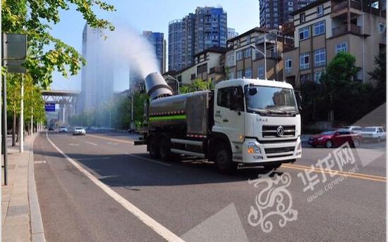 重慶街頭現(xiàn)多功能抑塵車 車尾似"大炮"發(fā)射