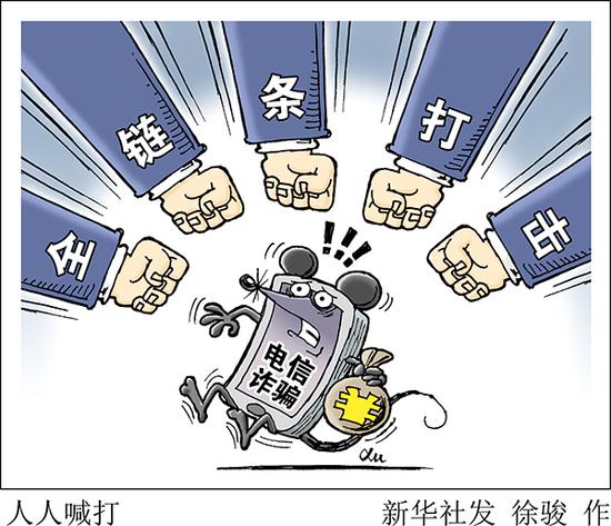 近日,山東、廣東發(fā)生3起學(xué)生遭遇電信詐騙案件,導(dǎo)致受害者猝死或自殺,引發(fā)社會(huì)廣泛關(guān)注。新華社發(fā) 徐駿 作