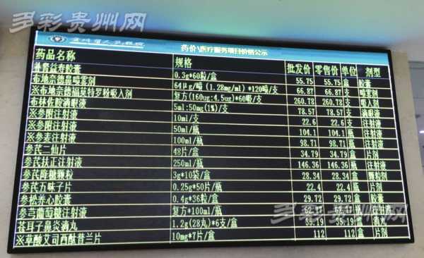 貴州省人民醫(yī)院藥房外的電子大屏在公布藥品進(jìn)價(jià)和售價(jià)。