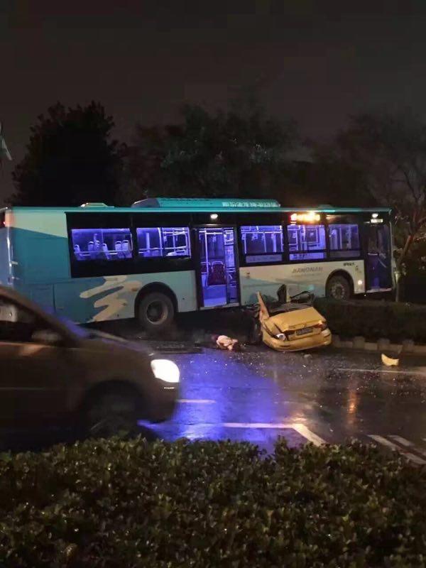 (原標(biāo)題:南京仙林一公交車碾壓出租車 目擊者:2人當(dāng)場(chǎng)死亡)