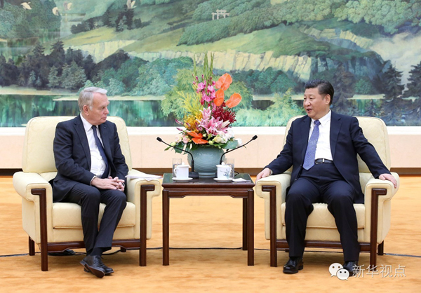 2016年10月31日,國(guó)家主席習(xí)近平在北京人民大會(huì)堂會(huì)見(jiàn)法國(guó)外長(zhǎng)艾羅。新華社記者龐興雷 攝