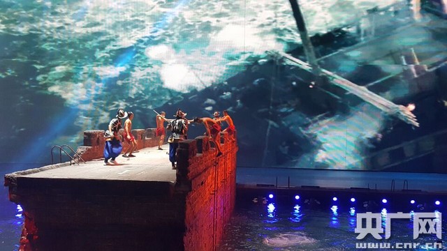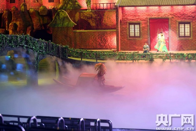 在神游華夏大劇院內(nèi),《閩南傳奇》正在上演,整場(chǎng)演藝共分六幕:天造鷺島、島城大戰(zhàn)、南洋歷險(xiǎn)、漁村人家、龍的傳人、福佑華夏,以閩南文化為主線,融入當(dāng)?shù)靥厣,把民俗、民族風(fēng)、民族音樂和人文歷史,用高科技的展示手法與國(guó)際最新的旅游演藝劇目結(jié)合起來。
