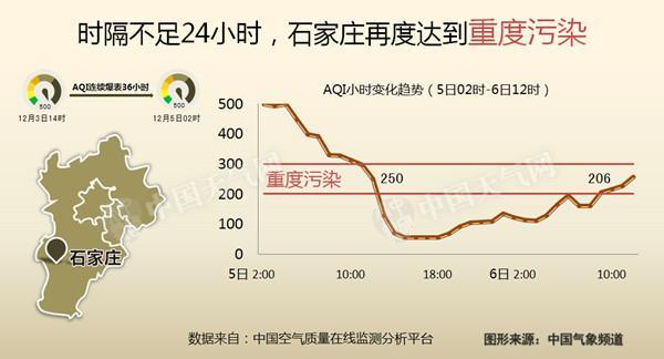 昨天,隨著冷空氣擴散南下,北方部分地區(qū)霾天氣反彈,以省會城市石家莊為例,時隔不足24小時,空氣質(zhì)量再度達到重度污染。