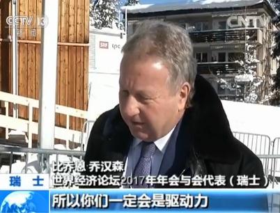 1月17日,中國(guó)國(guó)家主席習(xí)近平在瑞士達(dá)沃斯出席世界經(jīng)濟(jì)論壇2017年年會(huì)開(kāi)幕式,發(fā)表題為《共擔(dān)時(shí)代責(zé)任共促全球發(fā)展》的主旨演講。中國(guó)最高領(lǐng)導(dǎo)人首次亮相全球最大規(guī)模非官方經(jīng)濟(jì)盛會(huì),全世界高度關(guān)注。央視記者對(duì)此進(jìn)行了采訪。