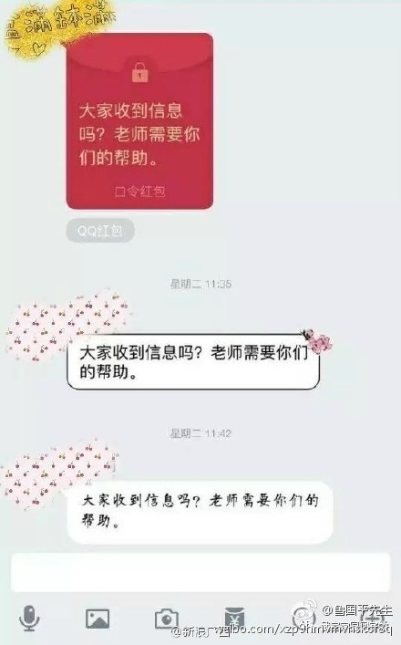 網(wǎng)帖中還上傳了數(shù)張疑似該老師與學(xué)生的QQ聊天截圖,其中的一張截圖中的對話道出了老師“眾籌”買車的原因:“新的一年又開始了,萬事待發(fā),你們更是前程似錦。老師心里有個念頭已經(jīng)很久了,小孩也快四歲了,每次回家都路途遙遠(yuǎn),要轉(zhuǎn)幾次車,你們師母和小孩更是暈車嚴(yán)重,有時一路吐回家,看看他們?nèi)绱送纯,真是愧為男人!所以,擁有一輛車是多么的迫切。你們也知道老師那些工資維持生活都很艱難,更不敢有什么想法,也不好向父母親人求助,都三十多歲了,真的羞于啟齒!所以,雖然也很不好意思,但是也只能跟你們說說我的想法了:大家如果有能力的,可不可以慷慨解囊一兩百塊,等你們哪天結(jié)婚了,再給你們打紅包怎么樣?但愿你們能幫幫你們的老師吧!