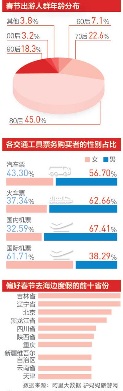 春節(jié)期間,全國(guó)共接待游客3.44億人次,同比增長(zhǎng)13.8%。交通越來越便利,科技越來越發(fā)達(dá),服務(wù)越來越多元,為選擇過“旅游年”的人提供了條件。從國(guó)內(nèi)游到出境游,從住酒店到住民宿,從線下預(yù)訂轉(zhuǎn)移到線上,“升級(jí)”成為春節(jié)旅游市場(chǎng)的最大亮點(diǎn)。