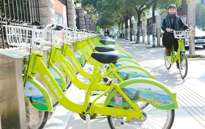 安徽淮南,一位市民在騎公共自行車。 人民視覺(jué)