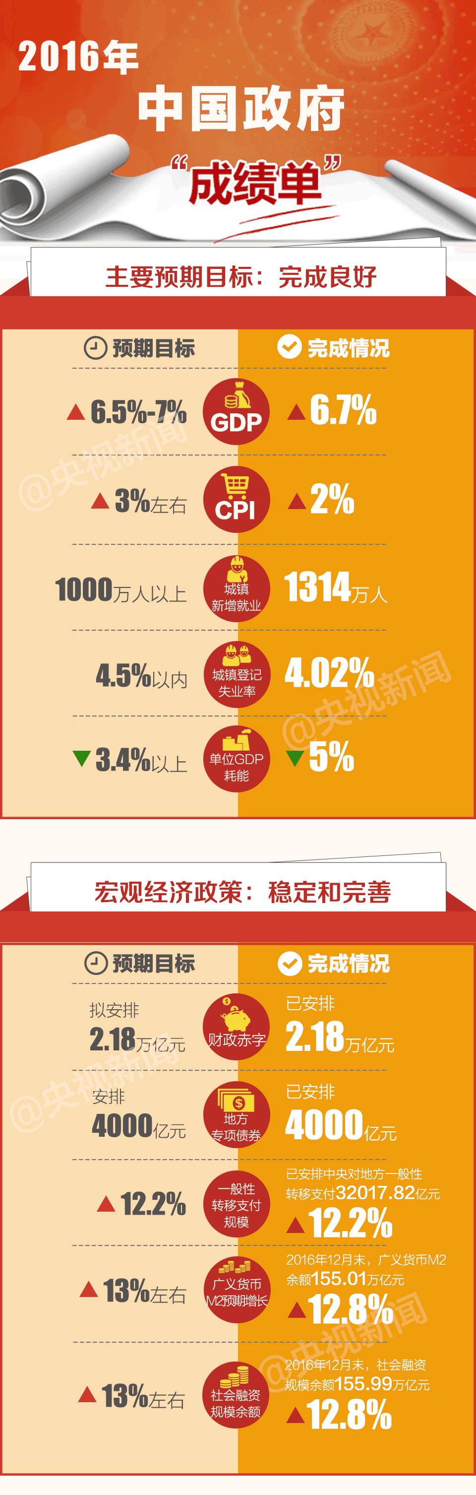 2017年中國“兩會”時間已經(jīng)開啟。3月1日,國務(wù)院公布了2016年《政府工作報告》量化指標(biāo)任務(wù)的落實情況,三十多項硬指標(biāo)中,有的達(dá)標(biāo)完成,有的超額完成。接下來,小編就帶你來逐一“對賬”,看看這份有關(guān)我國經(jīng)濟(jì)社會發(fā)展的答卷,你給打幾分?