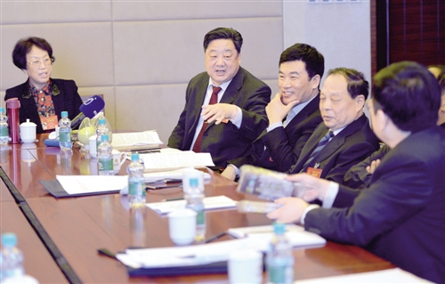 3月5日下午,人大黑龍江代表團在駐地分組審議政府工作報告。付華廷代表(左二)在發(fā)言時說:“政府工作報告體現(xiàn)了以人為本、執(zhí)政為民的思想,催人奮進。”本報記者 李景錄攝