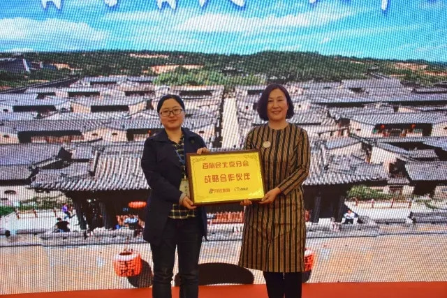 圖4、靈石縣文物旅游局局長秦彩焰接受同程旅游“百旅會北京分會戰(zhàn)略合作目的地”授牌。