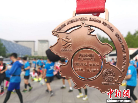 所有完賽選手,都將獲得一枚獎(jiǎng)牌。 中新網(wǎng)記者 岳川 攝