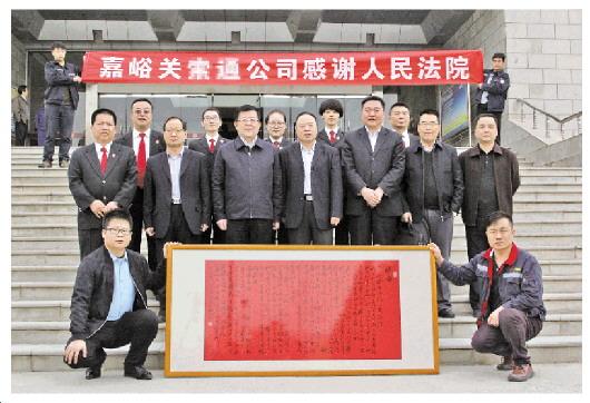4月6日,執(zhí)行申請人嘉峪關(guān)某公司為嘉峪關(guān)中院送去了裝裱一新的感謝信,交給該院院長茹作勛。