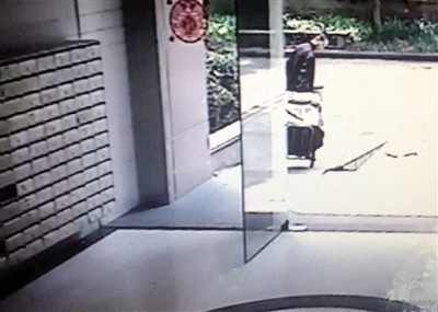 犯罪嫌疑人用小推車將保險柜運出小區(qū)。